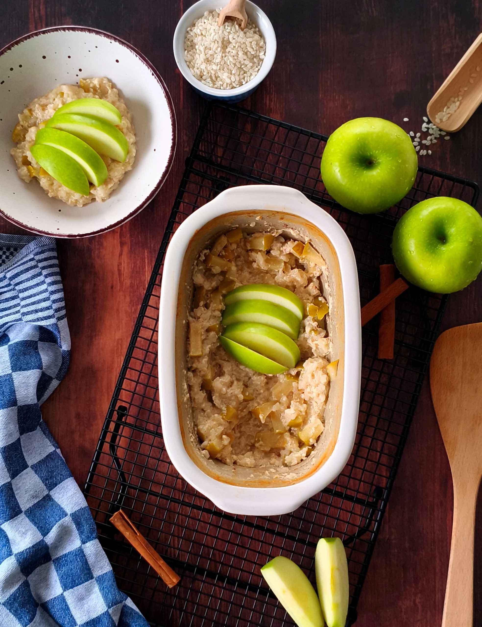 - Alle trockenen Zutaten in den Kleinen Ofenmeister geben und gut durchrühren und die Milch drübergießen.